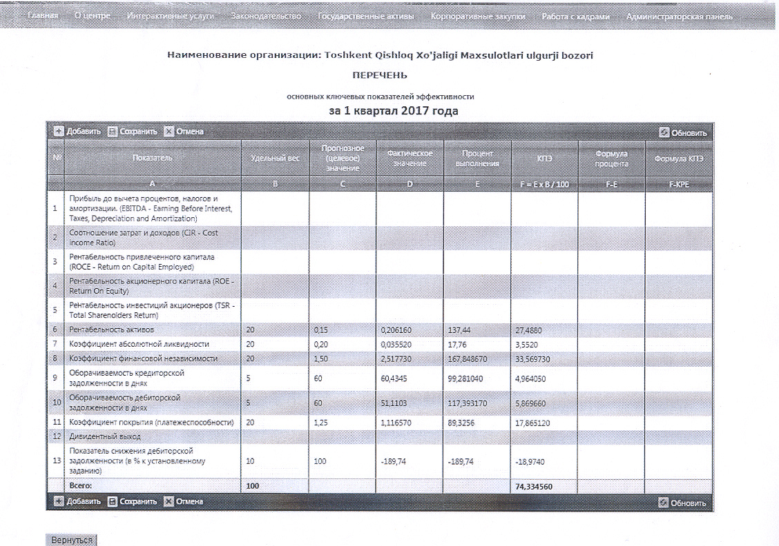 | 2017 йил I-ярим йиллик буйича самарадорликнинг муҳим кўрсаткичлари |