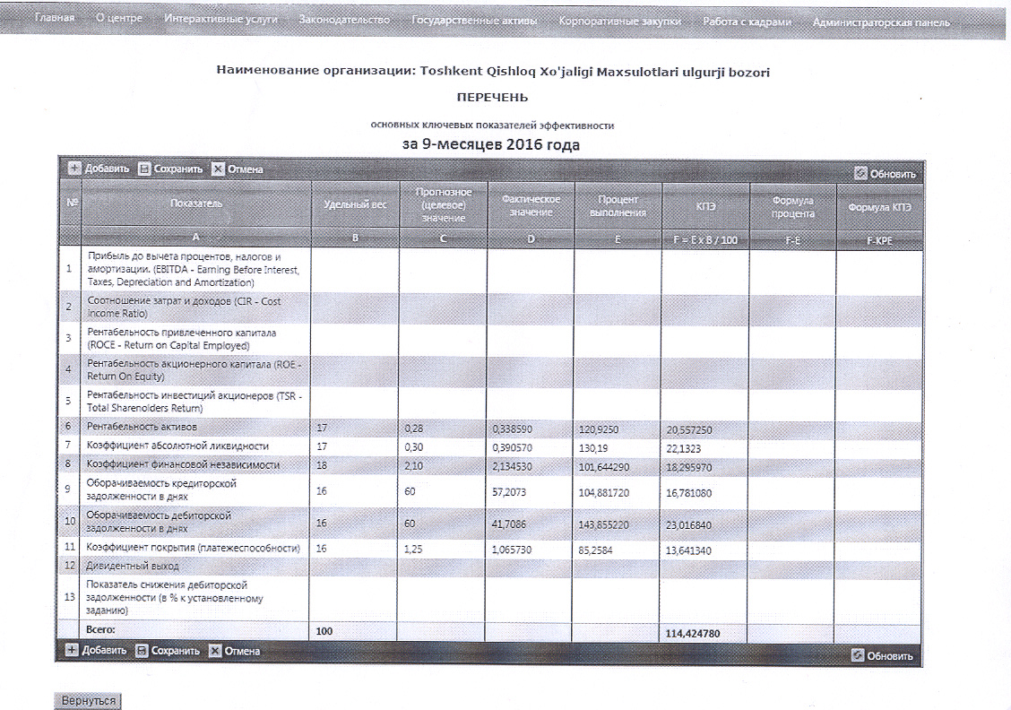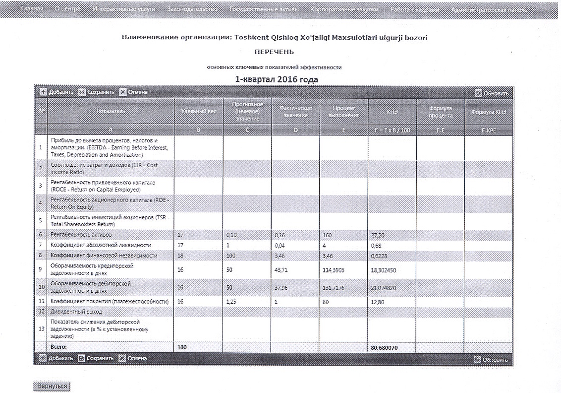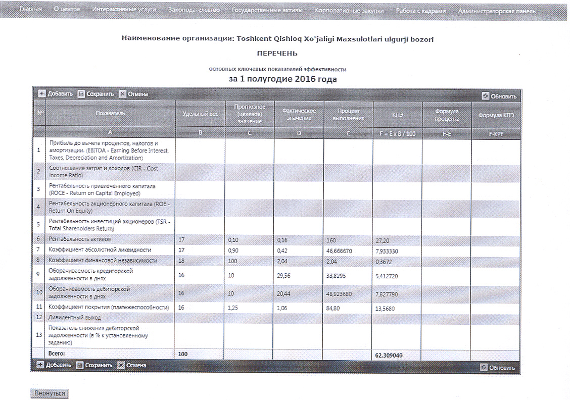 | 2016 йил 1 ярим йиллик буйича самарадорликнинг муҳим кўрсаткичлари |